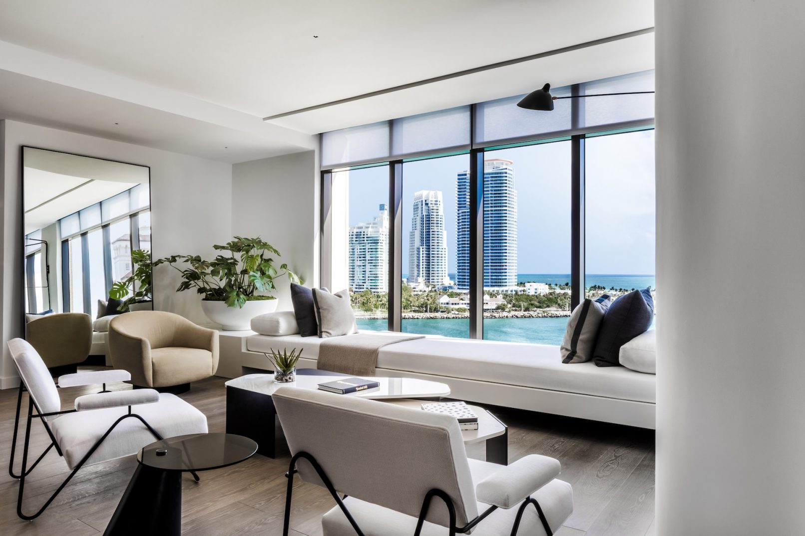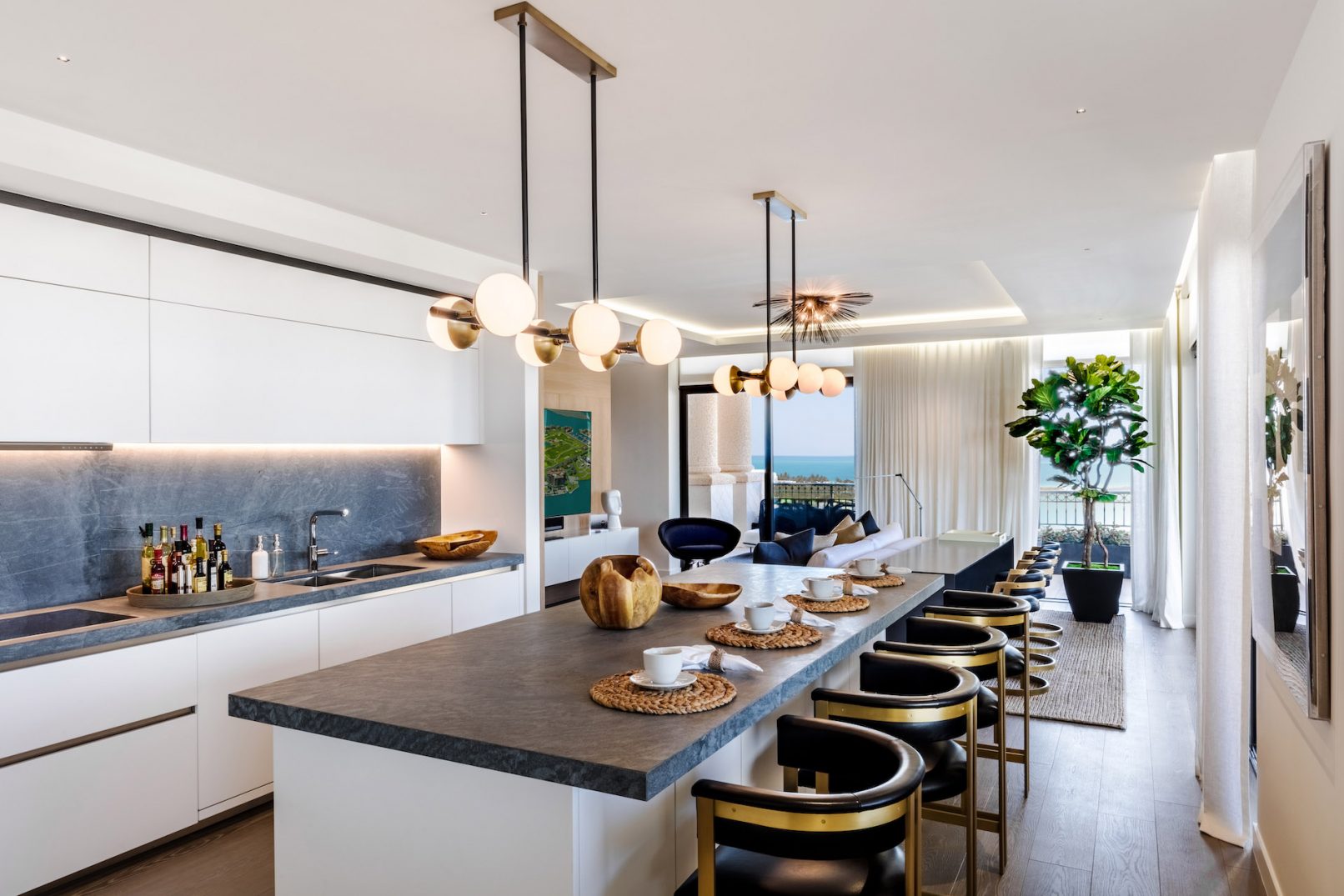 Sam Robin’s approach to designing this large condo unit was to try to improve the already beautiful project by adding a fresh feeling. We were looking for someone to do clean-lined modern, but at the same time beach house chic. Sam Robin nailed the concept perfectly. “The views are so spectacular I wanted them to be the drama,’ she explains. “When there’s too much fabric, too much color, too much stuff going on, you get tired of the layering. Especially in Miami, where it’s hot, you want fresh feeling. In South Florida, we favor casual elegance.”