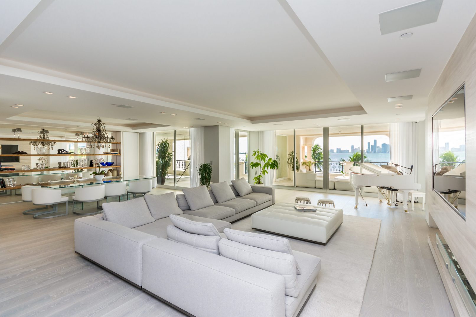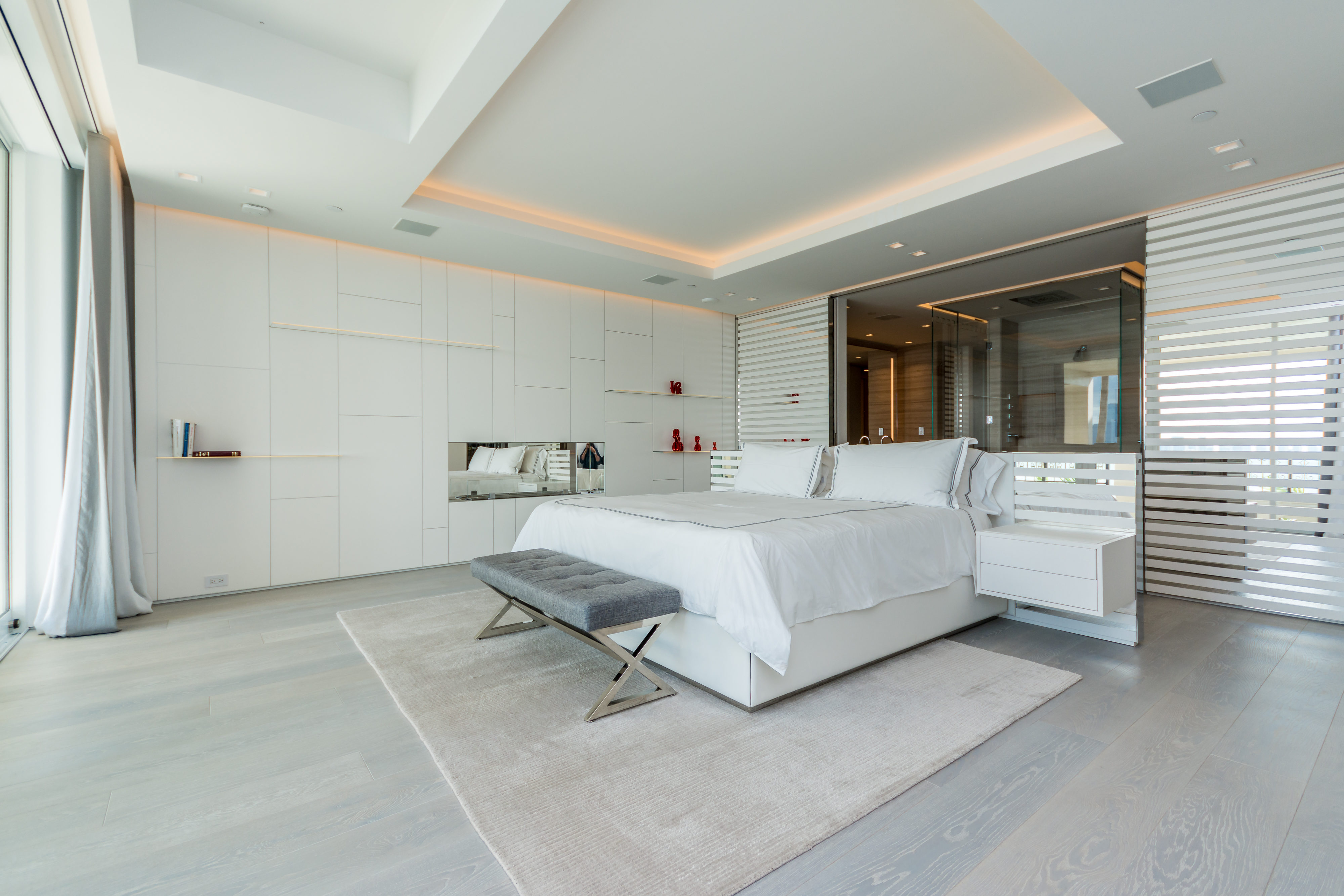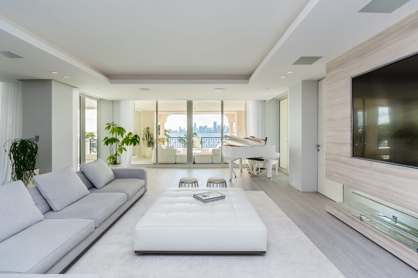 We recently completed a beautiful full renovation to a Bayside Unit. The vision was a beach feel executed with elegance and sophistication. The ultra-modern design is dominated by clean, bright white with lighting and other elements evocative of its waterfront locale. Augusto Busnelli specified multiple materials combining earth tone leathers with two-tone stitching, along with lots of glass and inox. Beautiful custom-stained wood flooring was designed to match the Master and specialty doors. This creates a seamless flow throughout the unit, extending onto the terrace, where the owners relax to a stunning downtown Miami view.