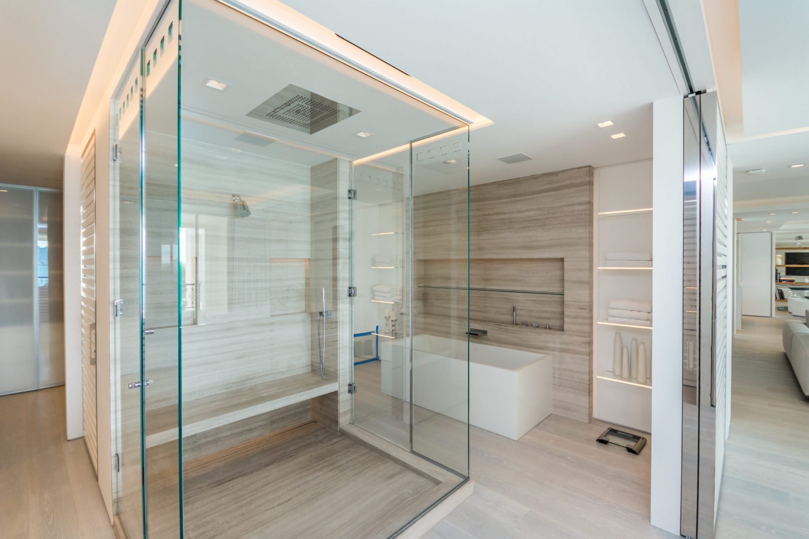 ASR successfully built floor-to-ceiling glass see-through wine storage and customized air ventilation with hidden diffusers throughout, just to name a few of the unique features in this home. The ability to execute these fine details to the highest level differentiates a fully customized unit and from a standard build-out.